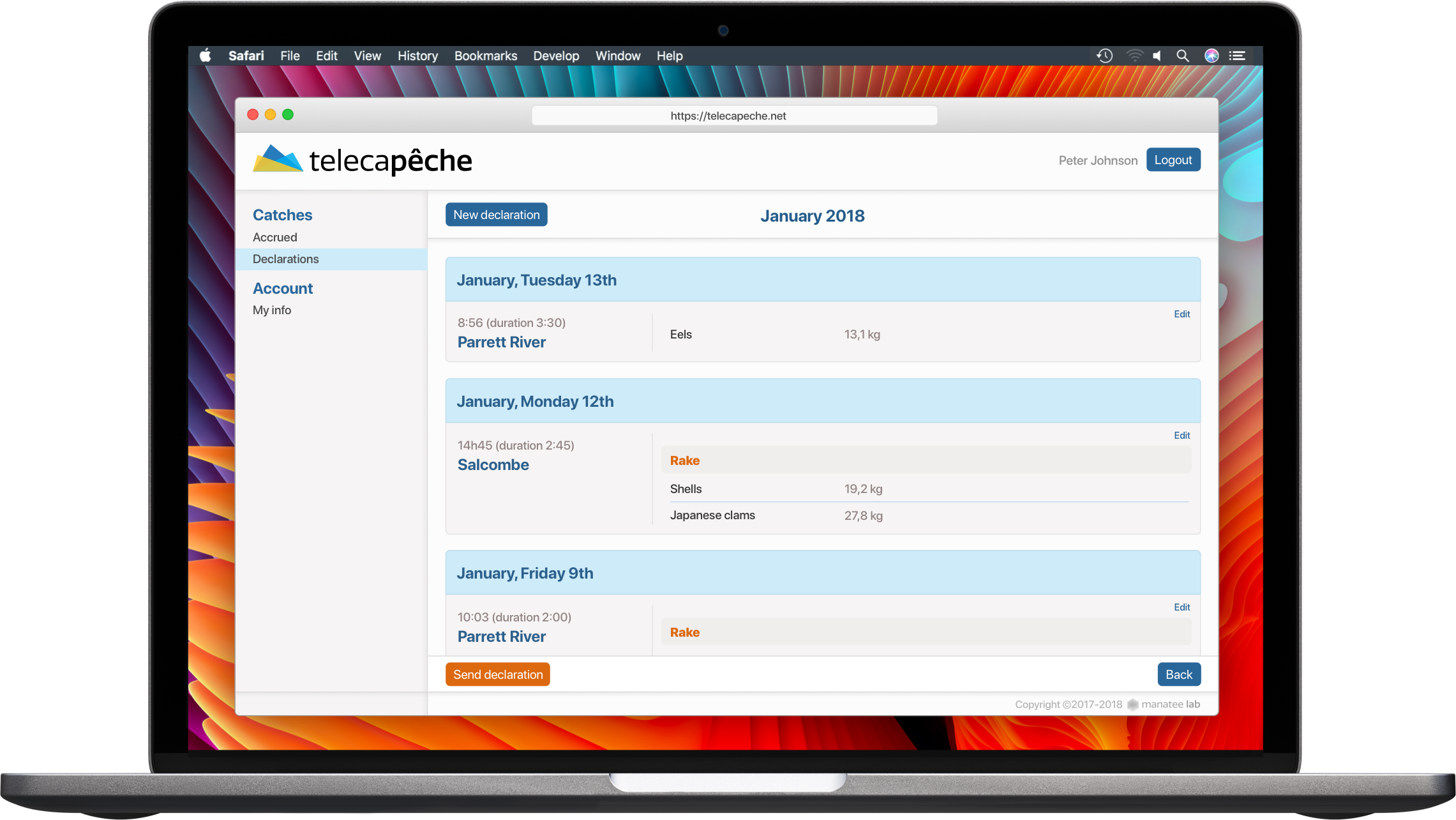 Through simple SMS or via the Web from a smartphone, tablet, PC or Mac, Telecapêche allows the recording and processing of fishing takes, in a blink of the eye.
